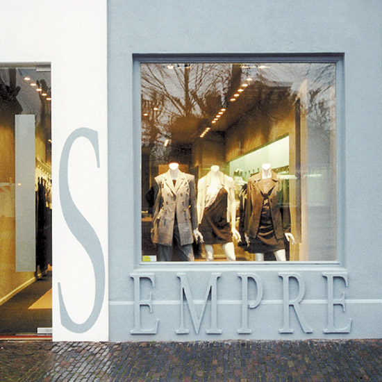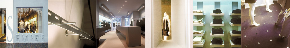 Er is gezocht naar een diagonale lijn in het pand die zorgt voor een optische verlenging van de ruimte. Een lange presentatietafel versterkt dit beeld. Armaturen in een balk aan het plafond zijn volledig geïntegreerd en dragen bij aan een sterk architectonisch beeld. Speciaal voor Sempre werden productpresentaties ontwikkeld en uitgevoerd in aluminium.