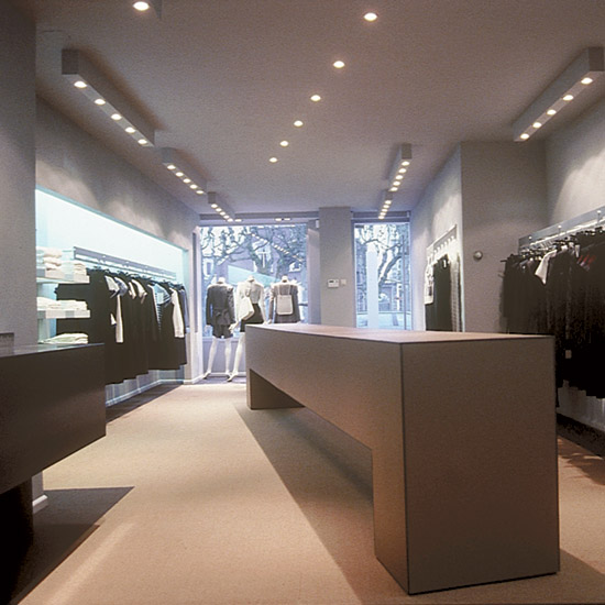 Een winkel met een ingehouden luxe en een moderne, maar warme uitstraling.