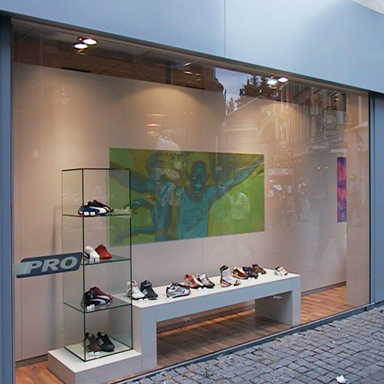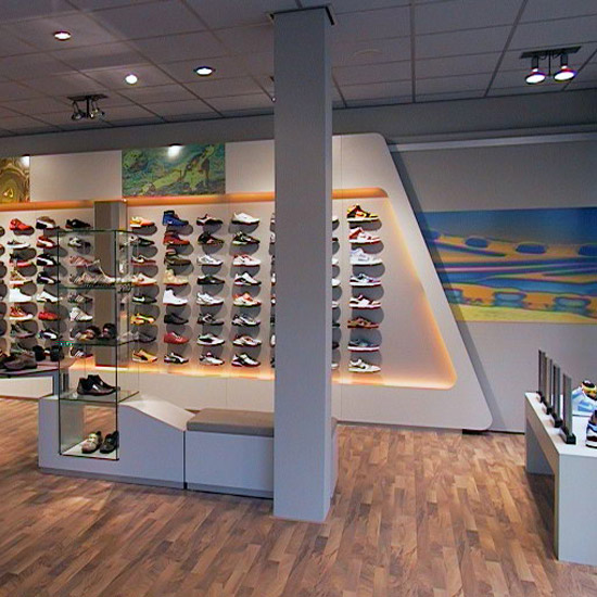 Als uitgangspunt hebben we het product gekozen van waaruit het concept hebben vormgegeven. Het product bevat kenmerken die hun oorsprong vinden vanuit de sportwereld. Dit qua uiterlijk, technische ontwikkeling, revivals, en steeds vaker in allerlei mixvormen. In materialisering en kleur is gezocht naar kontrasten om zodoende een goede combinatie te vormen met een 'warm' casual-gevoel en een 'koel' sport-gevoel. Het kleurgebruik moet de doelgroepen aanspreken. Het geheel moet toegankelijk blijven.