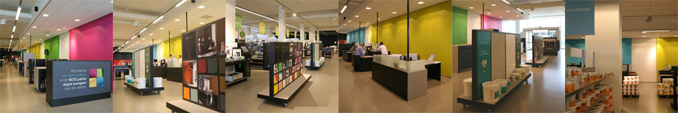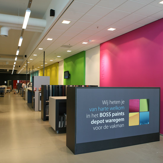 In een professionele omgeving die uitsluitend voor de schildervakman is bestemd is het volledige productgamma van Bosspaints ondergebracht. Persoonlijke ondersteuning door technisch onderlegde medewerkers staat centraal.